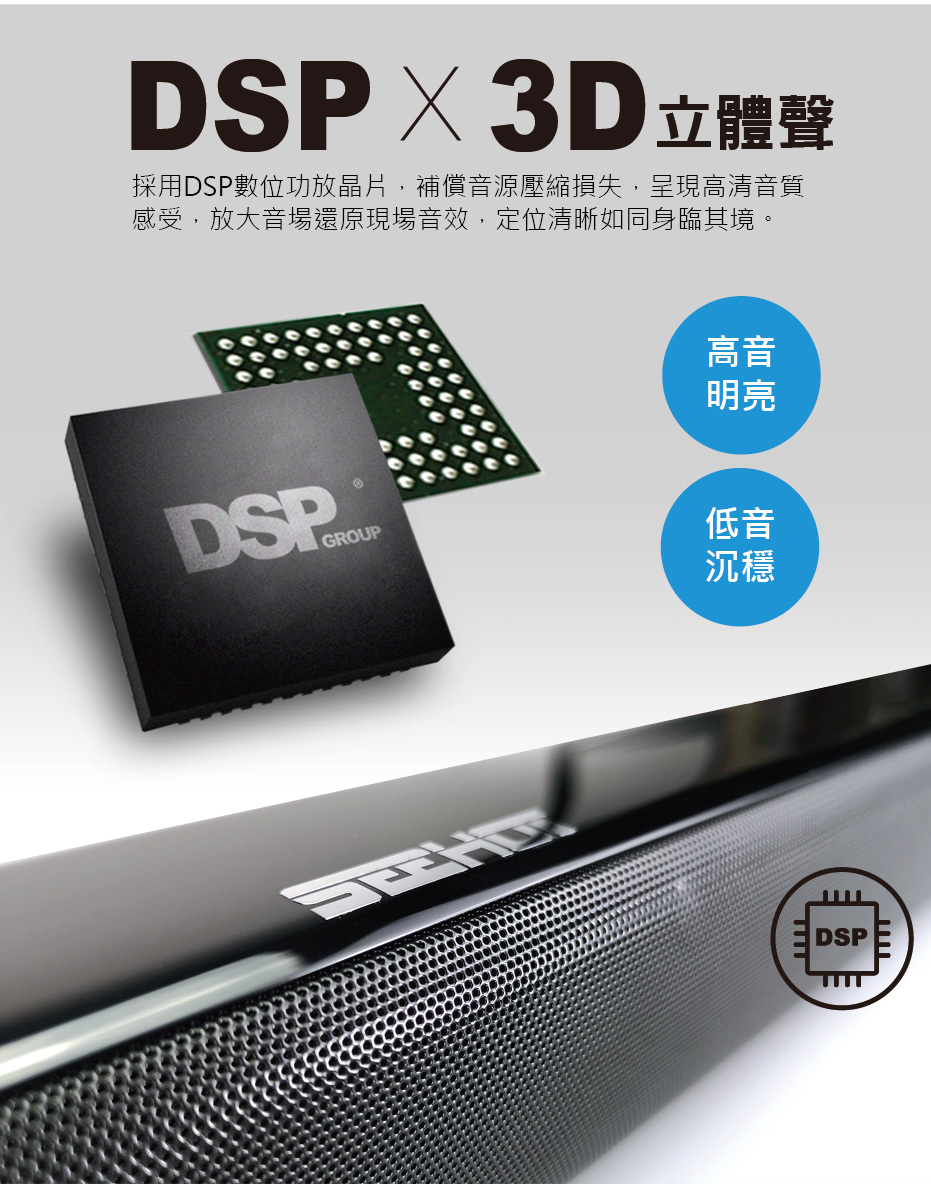 ►採用DSP音頻處理技術+3D環繞