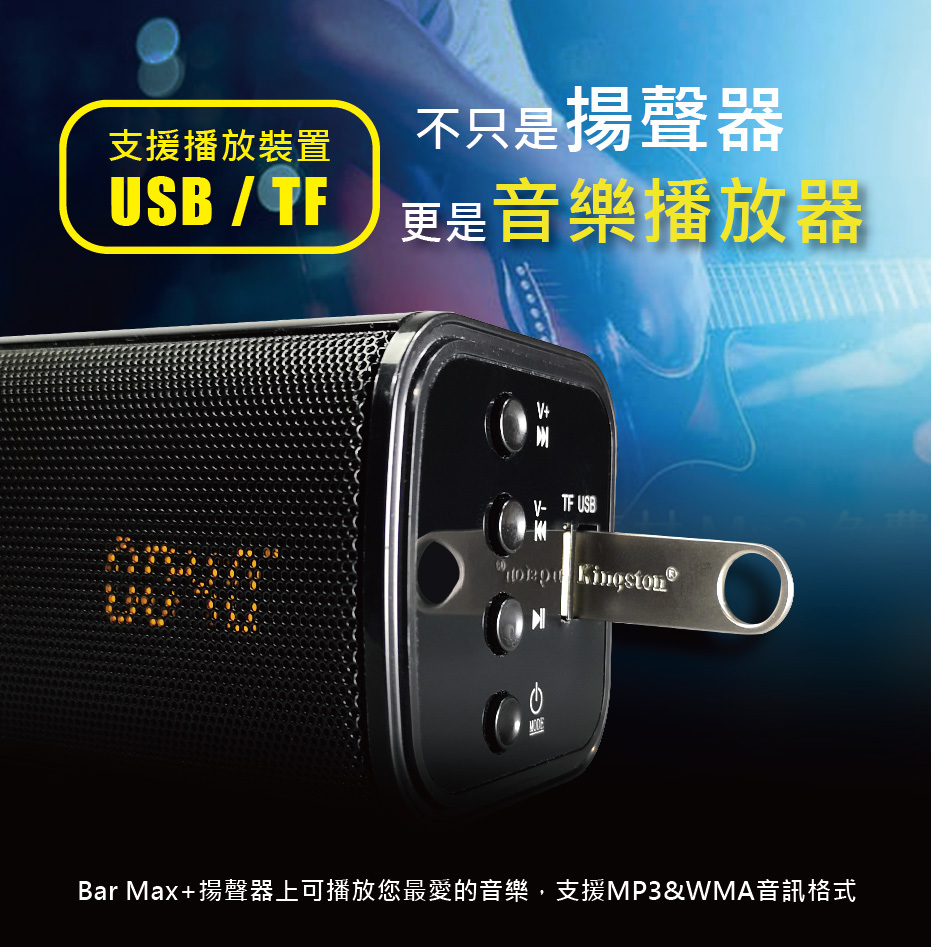 ◆支援TF卡、USB隨身碟播放音樂