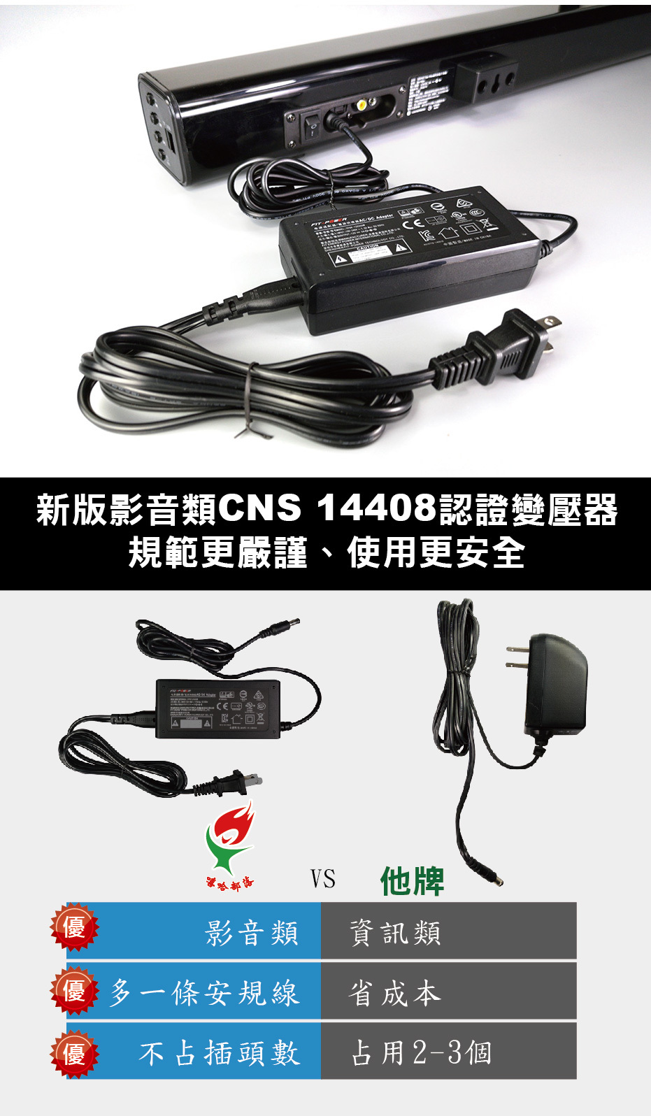 ►使用新版影音類CNS14408認證變壓器