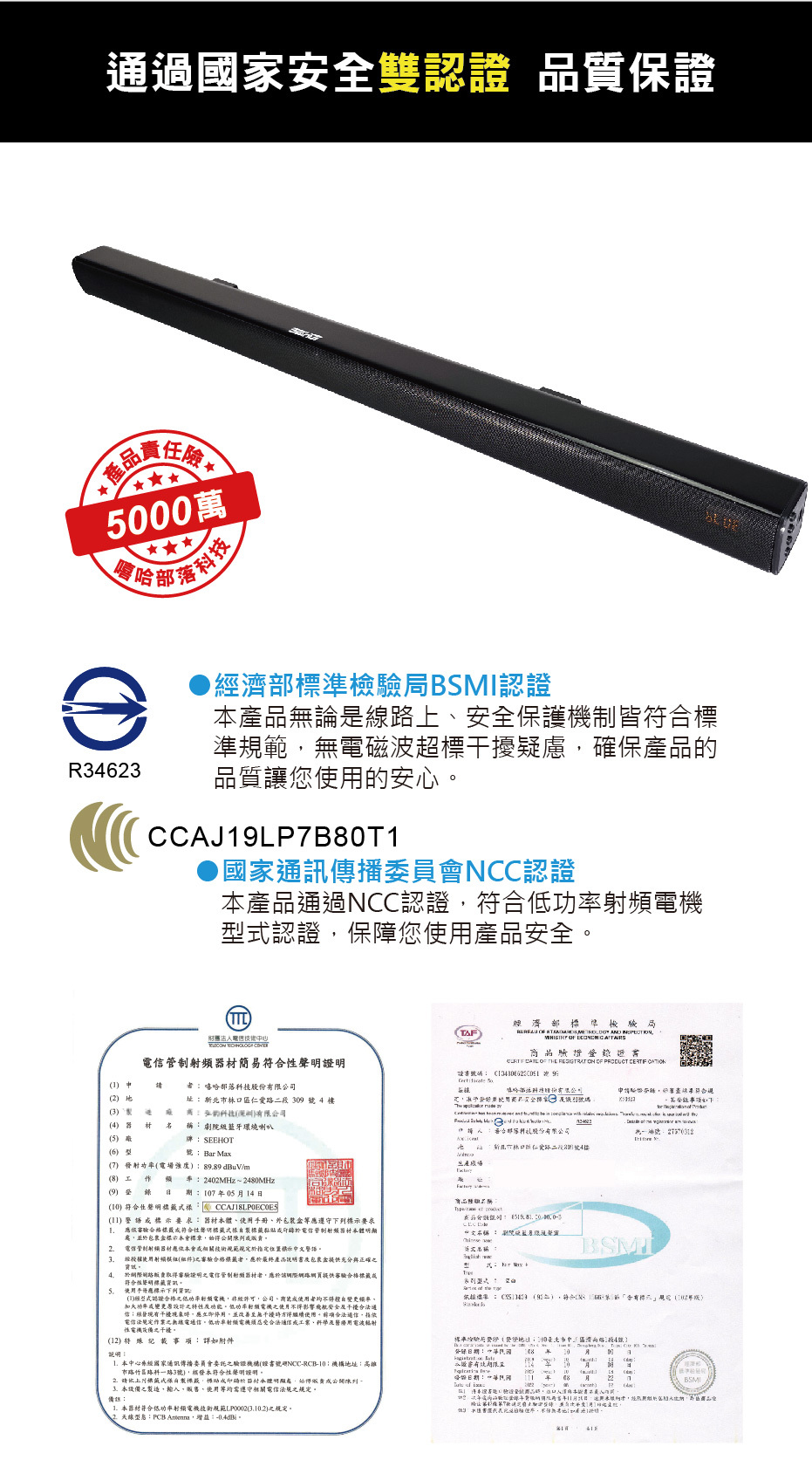 ◆通過國家安全BSMI及NCC雙認證