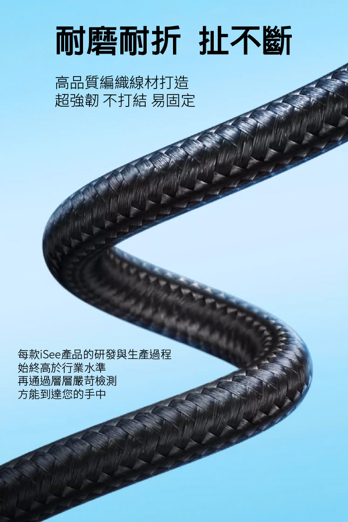 鋁合金外殼搭配高密度編織線 耐彎折不打結