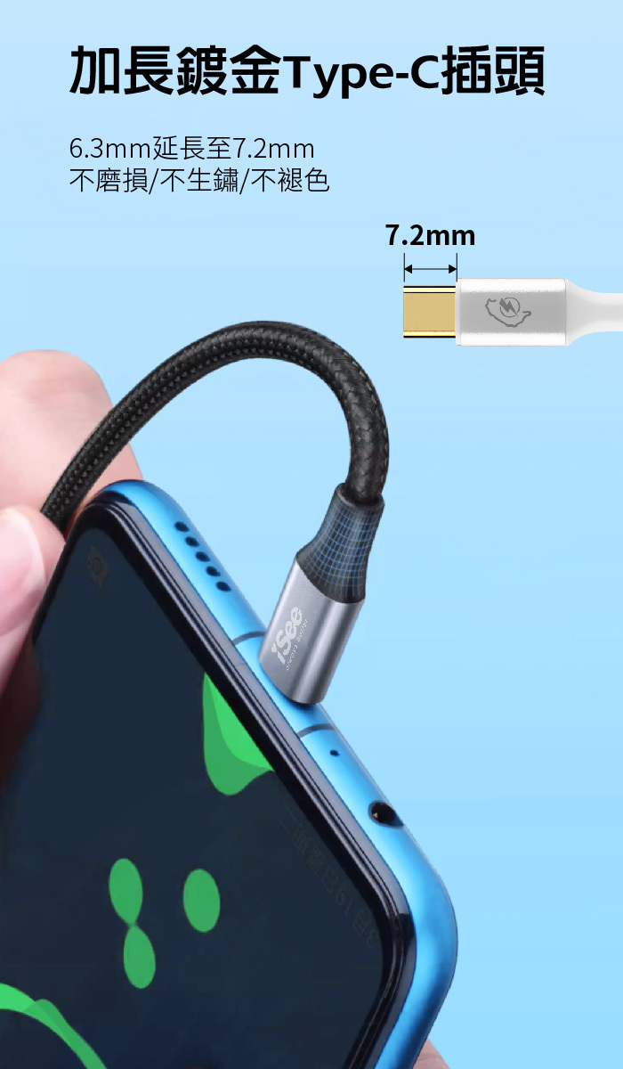 加長至7.2mm Type-C鍍金接頭