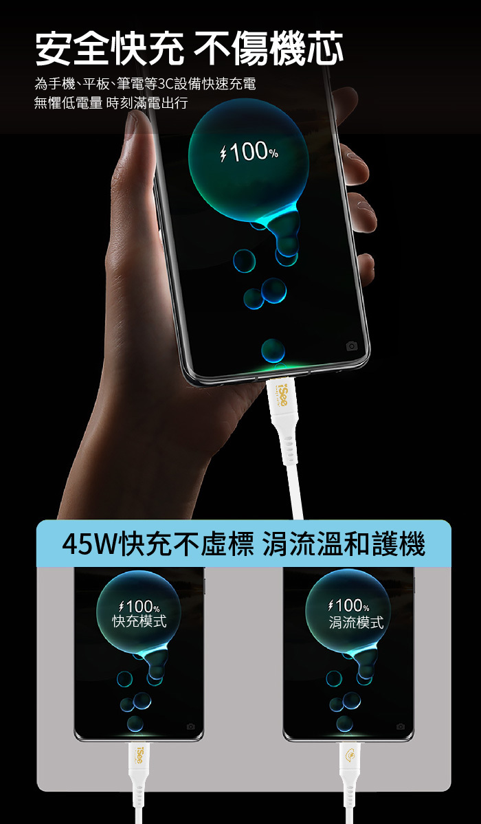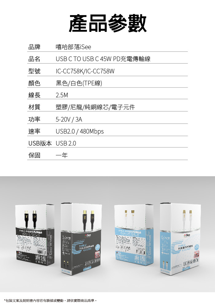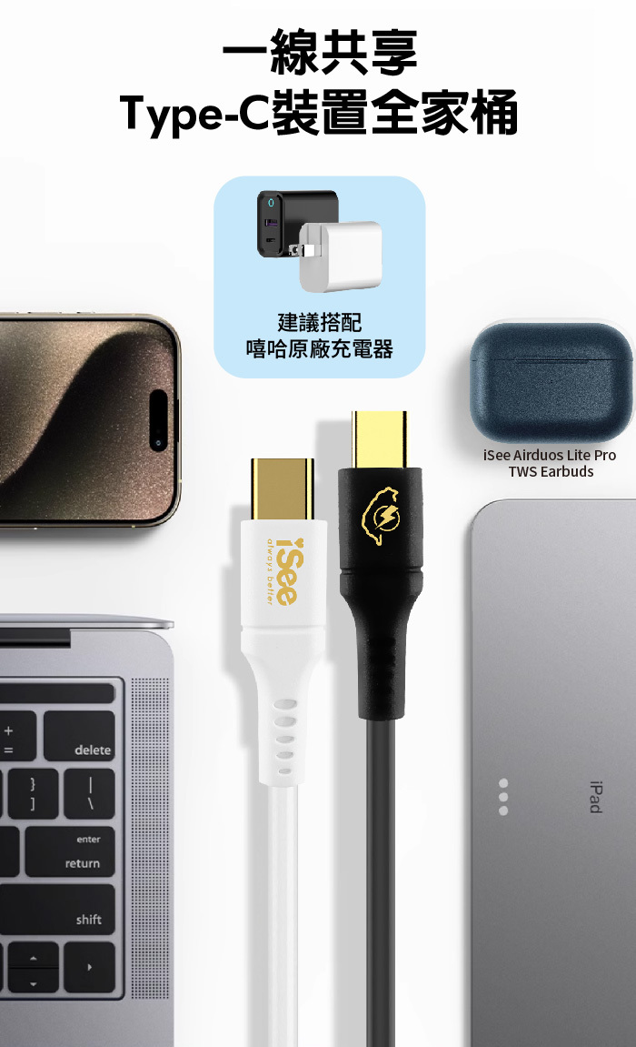 iSee 45W PD充電傳輸線2.5米 (IC-CC758) 白色