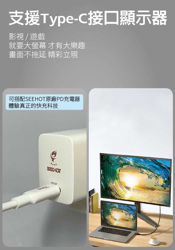 支援Type-C接口手機/平板/筆電/印表機/螢幕