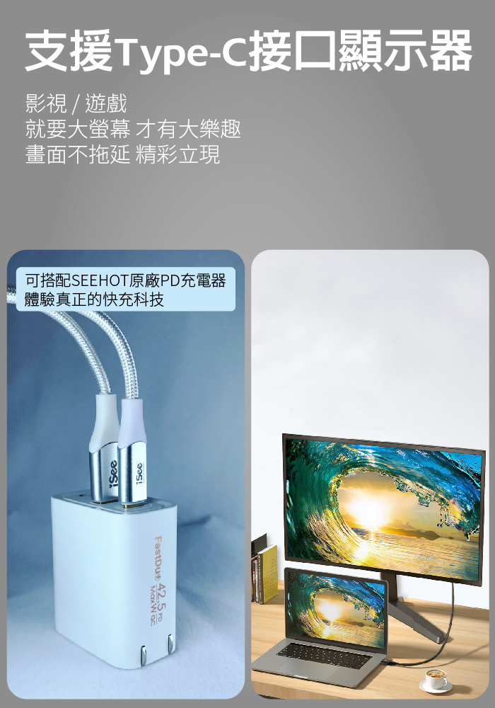 支援Type-C接口手機/平板/筆電/印表機/螢幕