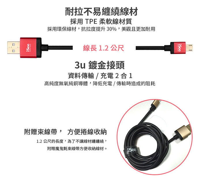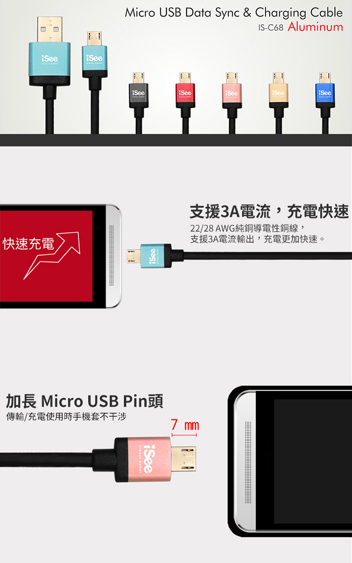 ◆支援所有Micro-B 手機、平板、耳機、相機充電與資料傳輸