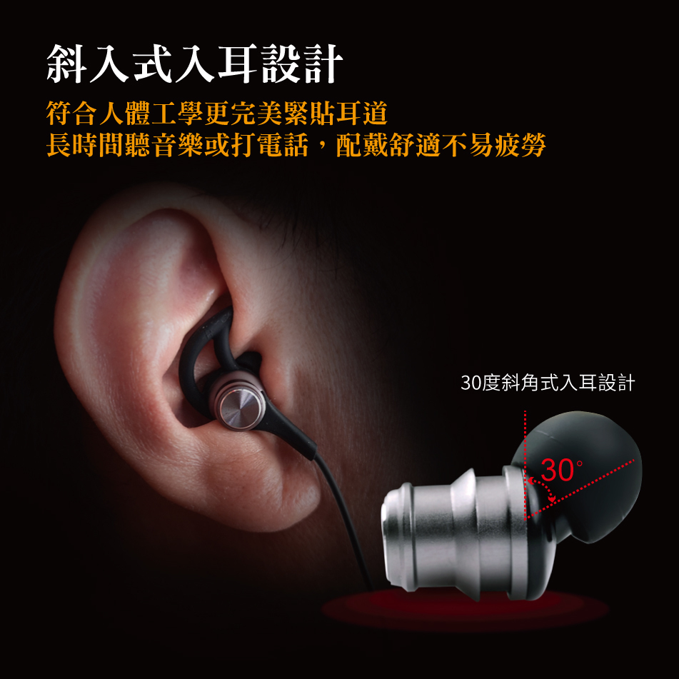◆斜入式入耳設計,緊貼耳道,不易疲勞