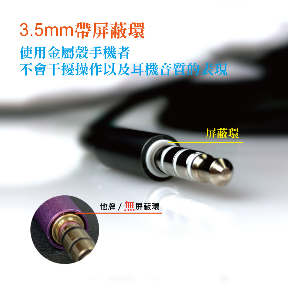 ◆3.5mm帶屏蔽環,防金屬殼干擾音質表現
