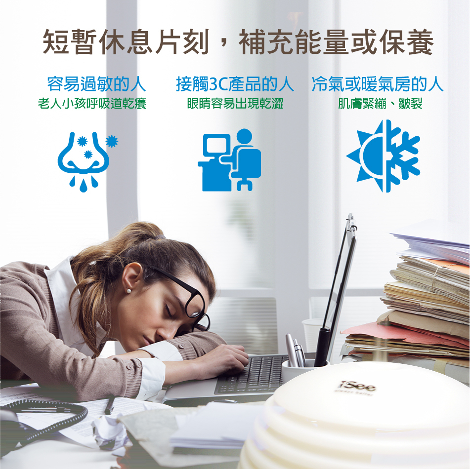◆加入純淨水,可以做迷你加濕器使用,預防冷、暖氣房帶來的乾燥所引起的不適。