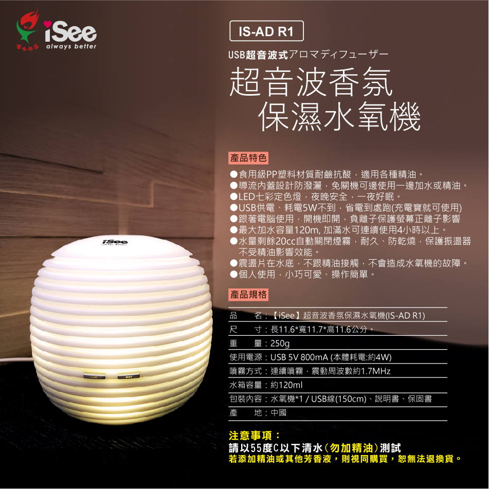 ◆測試請以55度C以下清水(勿加精油)測試,若添加精油或其他芳香液,則視同已購買本商品,恕無法退換貨。