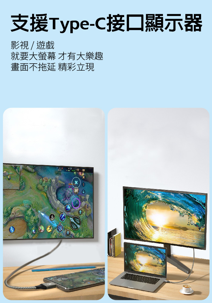 支援Type-C接口手機/平板/筆電/印表機/螢幕