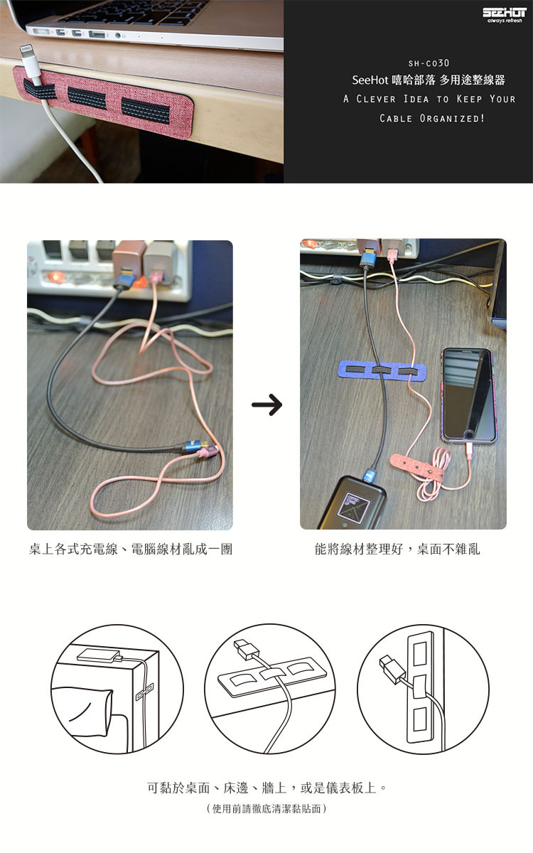 SEEHOT 文青風格 無痕多用途單槽整線器-6入裝 (SH-CO30)