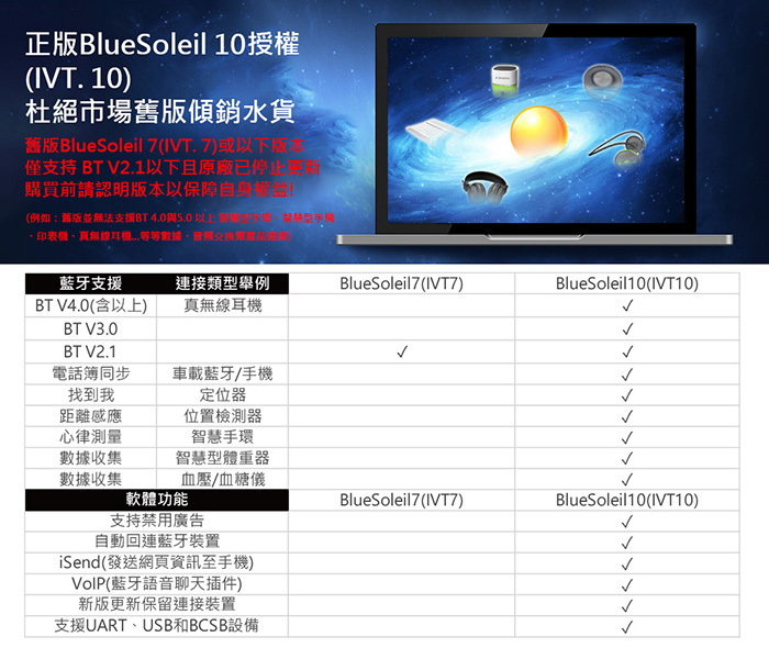 ◆IVT 10.0正式授權軟體,完全實現藍牙V4.0功能